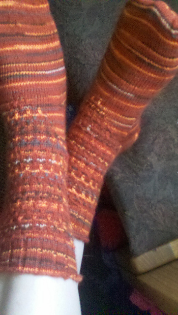 Well, I tried to adapt a pattern to fit his foot, but it wouldn't go over his heel. He has bony, bony heels, and they protrude far from his ankles, and no matter what I tried I was out of luck.